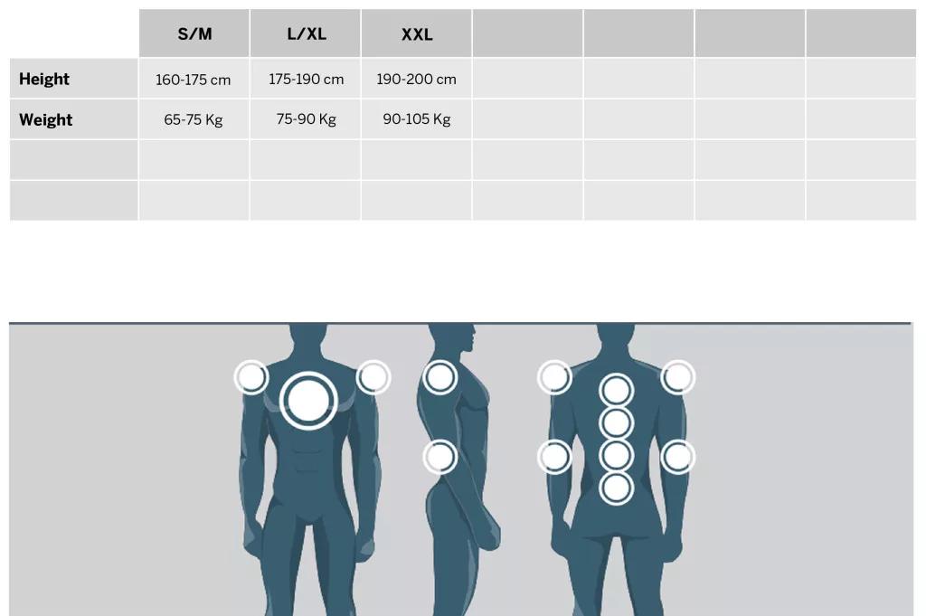 Védett zónák: Mellkas, hát, vállak és könyökök
