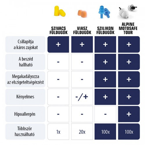 A szűrő kínálta csillapítás a legtöbb helyzetben elegendő, főként túrákhoz, vakációra, alacsonyabb sebességű utazáshoz ajánlott.