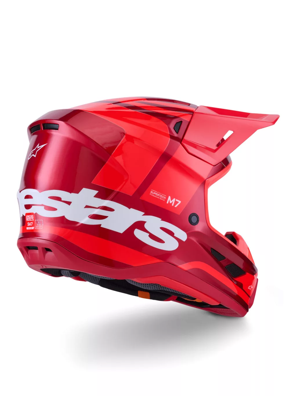 Az Alpinestars Supertech M7 (S-M7) "Core" Red a letisztult, határozott stílus képviselője. A "Core" grafika a minimalizmusra törekszik: a mélyvörös alapszínt csak a legszükségesebb fekete és fehér kontrasztok törik meg, hangsúlyozva a sisak agresszív, technikai formavilágát. Ez a modell tökéletes választás azoknak, akik egy profi, "gyári versenyzői" megjelenést keresnek sallangok nélkül.