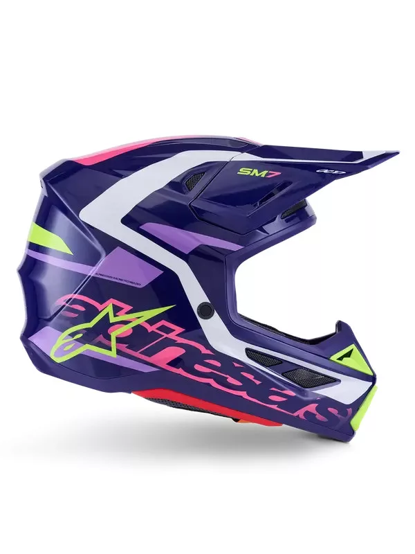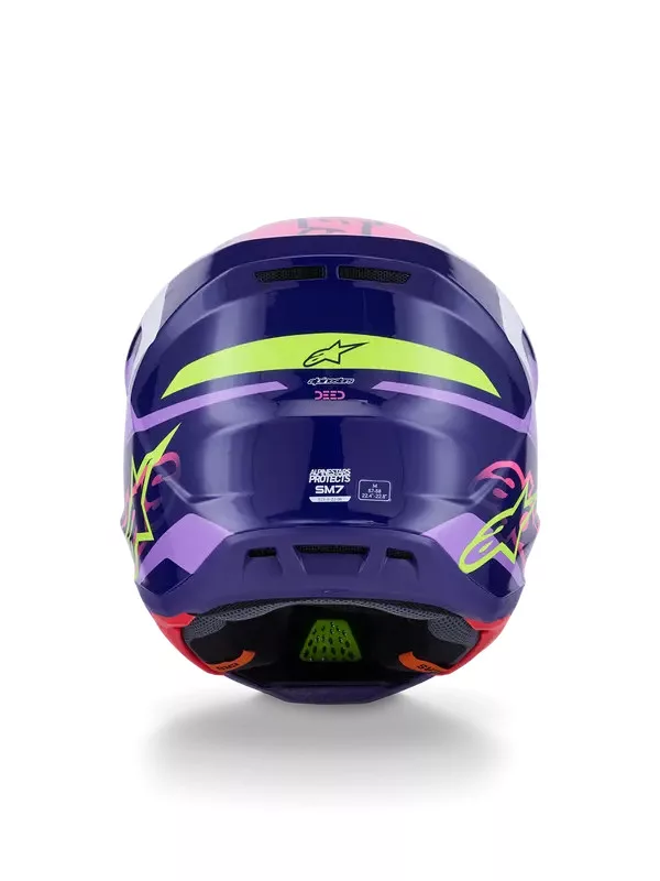 Az Alpinestars Supertech M7 (S-M7) "Deed" Pink-Purple a sorozat egyik leglátványosabb és legkülönlegesebb darabja. Ez a modell a vibráló neon rózsaszín és a mély lila árnyalatait ötvözi, ami egy rendkívül modern, "high-fashion" motorsport megjelenést kölcsönöz a motorosnak. A "Deed" grafika éles kontúrjai és merész színhasználata garantálja, hogy kitűnj a mezőnyből.